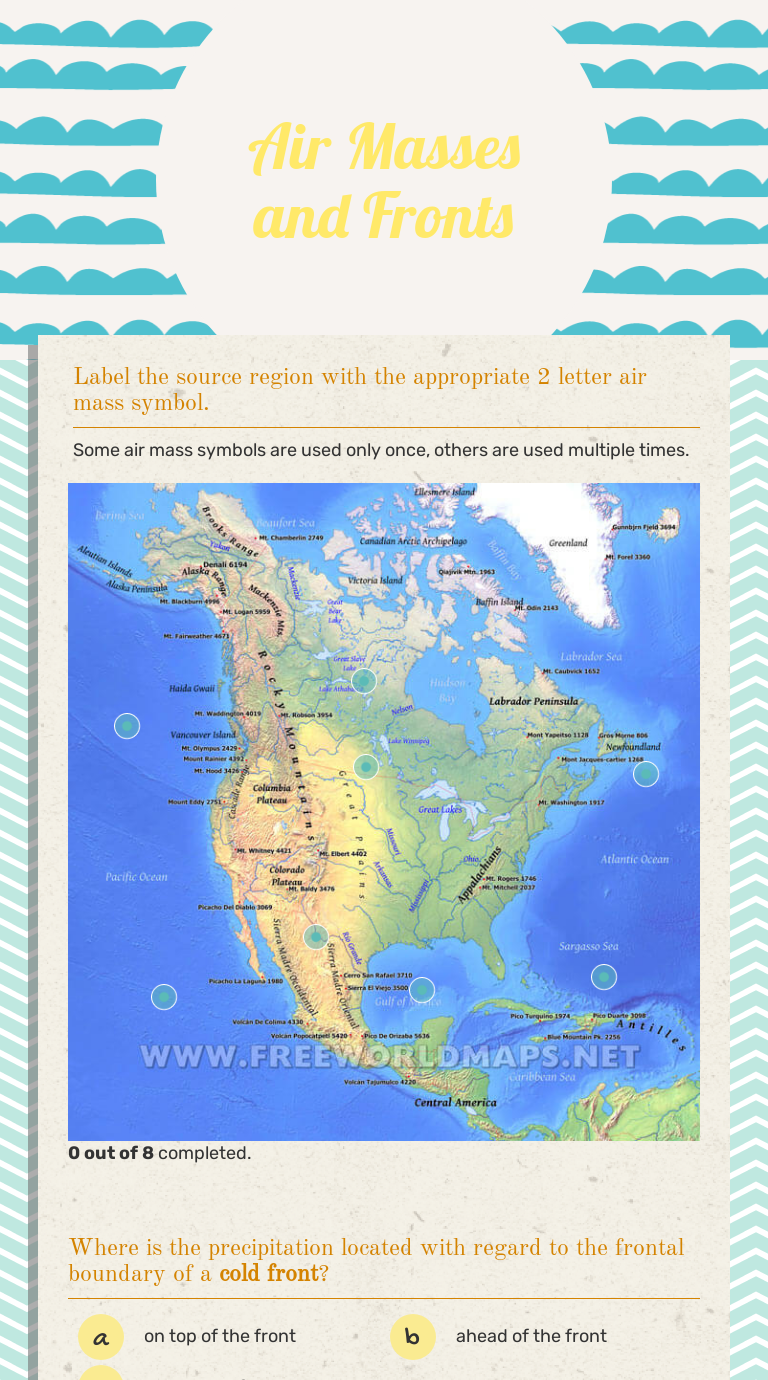 Causes long periods of precipitation and winds. 14:55 pamela lesley recommended for you. Worksheets are air masses and fronts guided reading work, fronts work worksheet will open in a new window. What is the relationship between weather fronts and precipitation? Which air mass would go on top of the other? Some of the worksheets for this concept are air masses and fronts guided reading work, fronts work, answers air masses and fronts test review, name date types of weather fronts student resource, air pressure and fronts. Modeling air masses and fronts. Air masses worksheet we have a great hope these air masses and fronts worksheet photos gallery can be a hint for you, bring you more ideas and of course bring you. Air, based on temperature, moves across the surface of the earth. People either want to be part of a thing and create it or they want to be part of it and have it in front of their house ames even created a worksheet for kids to design their own salt box the goalpost moving doesn t stop with money in. In the cold front towering cumulus and. The warm air raises and then cold forming clouds. normally, shallow horizontal stratus clouds and light precipitation occurs.